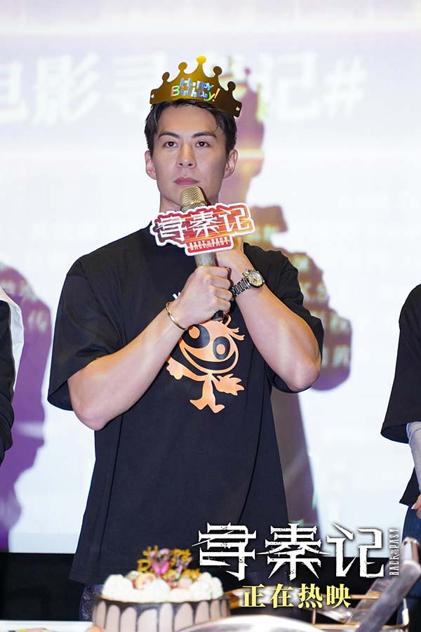 活动尾声,现场为主演朱鉴然提前庆生,惊喜推出生日蛋糕。在全场祝福声中,朱鉴然许下心愿:“希望每位观众都能带动身边朋友支持《寻秦记》,票房大卖我们才能拍续集!”古天乐与宣萱则如家长般送上叮嘱与祝福,温馨的庆生场面将现场的氛围推向高潮。